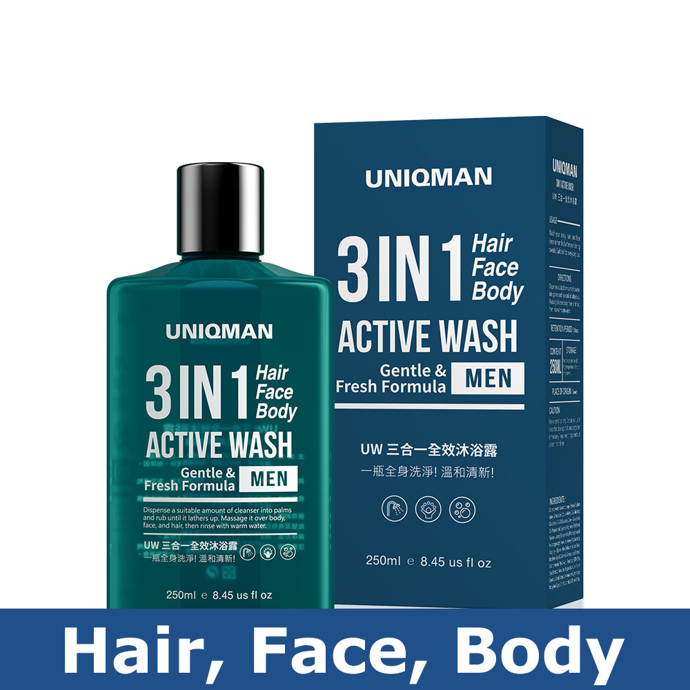 UNIQMAN 3 In 1 Active Wash - Hair Face Body 【Gentle & Fresh】250ml/Bottle 【Introduction of UW 3-in-1 Full Effect Shower Gel】Fast = not clean? That's because you haven't used this...
